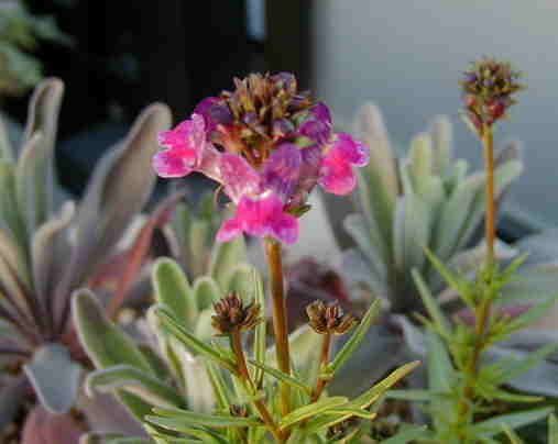 | 1/18(木) | リナリアグッピー・ブルーの一番花です。 そこそこ綺麗に咲き揃っていたパンジーが、すべて霜で枯れたようになってしまった悲惨な屋上で、一番元気なリナリア。弱そうに見えて強い子なんだけど、うどんこ病になりやすいのが弱点ね。 合わせやすい色なのでピンクよりブルーちゃん、あなたに期待してますよ。 |
