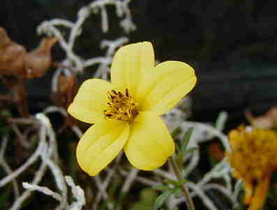 | 1/20(土) | フレームの中のビデンス。外のビデンスも元気ですが花はついていません。 黄色の小花はピンクや青の脇役に少しだけ使うと効果的で、ピンクを可愛らしく青を寂しくなくしてくれますよね。 冬枯れした屋上もじっくり眺めてみるといろいろな変化が起こっていたりします。いつまでも咲かないと思っていた高性ストックの先端が伸びてきているようだし、チューリップと寄せ植えしているアスペルラの蕾も色づいてきました。宿根ネメシアがこぼれ種で発芽していたり、見たことあるようなないような芽が出ていたり、セージ類の新芽が出ていたりします。秋に死にかけだったかげろう草の元気な姿を見つけて「あー、みんな生きてるのね」と感動。 |