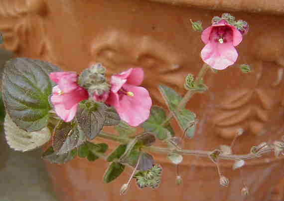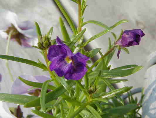 | 1/12(金) | リナリア・グッピーが一週間前から咲きだしています。 今日は冷たい風の吹く中がんばって植え替えをしました。ポリポットが一時切れて小さいポットに植えていたフロックス、ディアスシア、ネメシアなどをポッとあげ。 土を買いに行った近くのホームセンターでまた衝動買い。だって安いんだも〜ん!ディアス・マーガレット・ブルークローバーを全部で10個。ディアスは新種(?)でライラックベル。ディアスとネメシアに目がない私。でもどう見てもこのディアス、ネメシアみたいなんだ。きっと同じゴマノハグサ科だと思うけど、葉の形とか花もちょっと違うように思うのは私だけ? |
