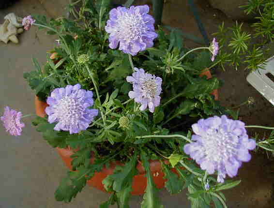 | 1/4(木) | あけましておめでとうございます。 今年も”アニスのコンテナガーデン”をよろしくお願いします。 今年の目標は「私らしい庭づくり」です。ハンギングひとつでも友達に「これ、あなたらしい」と言われるのが何よりのお言葉です。全部自分でしていても、なかなか思い通りの庭にはなりません。毎年少しづつでも夢に描いている庭に近づいていきたいと思います。 写真は四季咲きスカビオサ。寒いのにベランダで次々蕾を上げています。 |