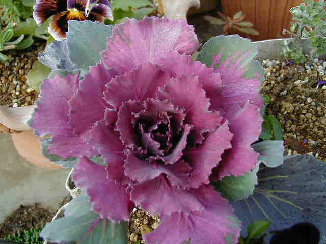 | 1/6(土) | 寒いの大っきらい!でも、この色が冴えてきたハボタンの為にはもう少しの間寒いのも仕方がないの。暖かくなったら塔が立って菜の花になっちゃうもんね。 リナリアグッピーもマラコイデスも今にも咲きそうなのに寒さでなかなか咲かないの。写真に撮るものがあんまりなくて困っちゃう! |