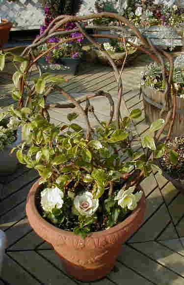 久しぶりに寄せ植えを作りました。 風で植え替えてまもないパンドレアが倒れてしまったので深い鉢への移し替えです。 おとといの新聞に沖縄花のカーニバル2002が1/19から開かれるとありました。なんと桜がその頃に咲くそうです。 昨日の神戸新聞には明石のお友達が淡路花博跡地のランドスケープ&ガーデニングコンペの審査をとおったことが出ていました。(おめでとー!)私アニスもハンギングでお手伝いすることになっています。 春が楽しみで〜す。 |