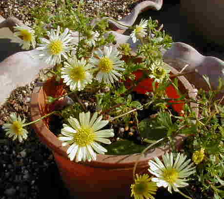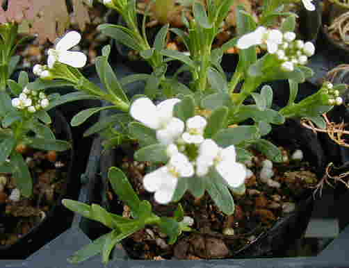 寒い中咲いているブラキカムちゃん。 紫のとは違い春にはビヨヨ〜ンと伸びて野趣あふれる姿になるところがこの子の良いところ。 秋に少しだけ挿し芽をしておきました。(写真は親株) 良いお天気だというのに風が吹き荒れてまるで嵐のような日が続いています。風さえ止めば暖かいだろうに・・・今日は「えべっさん」。寒いはずです。 ペーパーカスケード、キャンディータフト、ファセリア・ブルーベルなどに蕾があるのを発見!チューリップ・アプリコットビューティーも発芽しました。 |