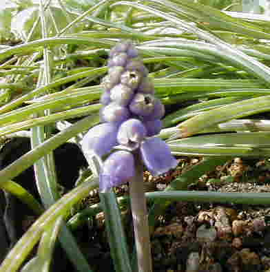 Oh!なんと貧弱なムスカリでしょう。 これでも毎年大きそうな球根を選んでポットに3球ずつ植えているのです。 これは1月に入ってからフレームに入れた分ですが、日当たりの良い戸外の寄せ植えの中のムスカリももう蕾を持っています。 今日ハンギングを3つ作り、パンジーを全て使いきりました。あとは発育不良のを1ケース残すのみ。余りのものを使ってこれから寄せ植え作りです。 このところパンジーの蕾がカッターで斜めに切ったように食べられているので変だなと思っていたら、スズメが食べているのを今日発見しました!許せない〜!! |