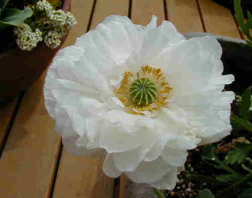 | 4/9(月) | 九州のTさん、咲きましたよ〜!poppy angels choir mixed(suttons)。いつも種ありがとね〜。もう1株あって、さてどんな色か楽しみです。フレームの中で2月からつぼみがあったのに、長い間待たされましたが、朝の見回りでこんな素敵な花を発見できて嬉しかったわ〜♪ 高性ストックが花盛りなのに対し、わい性のは終わりを迎えつつあります。冬中あんなに元気だったのに寂しいよぉ。 頼まれ物のハンギングを先週2つ作ったけれど、自分のは4月に入ってから作ってなくて、早く初夏物を作りたいなぁ〜。 |