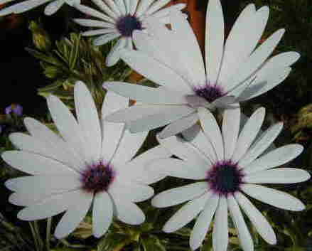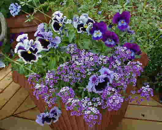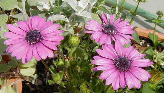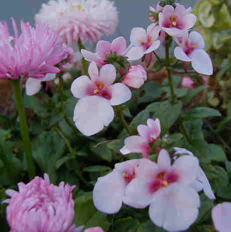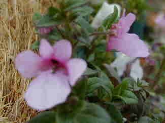 アナガリス・ブルーピンパーネル フェリシア このフェリシアはひとり生えのもの。フロックスとアナガリスは10/13に種まきしたものがどちらも今日咲きました。 ハンギング用にと作ったのですが、バスケットがない! 昨日と今日で最後の4つを使ってしまったの。どんなのを作ったかというと・・・ディアスシア・シドニーオリンピックのとネメシアKLMのと、フクシアのそれにこのフロックス&バーベナのです。日焼けで鼻がヒリヒリするぅ〜。 |