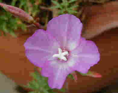 このような色がイギリスではポピュラーだとどこかで読みました。ミックスの種の中には青もあったはずで、去年はレモン色一色のもあったのに、今咲いているのは何故かこの色ばかり。黒や青、ピンクのダブルフラワーも植えているのに咲いてこないのは何故だぁ〜。 今、屋上ではこぼれ種でアルテナンテラやヒメツルソバ、アスターらしきもの、カレンジュラ冬知らずなどがどんどん発芽しています。種って去年からじっとしている訳ではなくて風で飛び回ってるみたいです。2週間くらい置いておいたみずごけの上に生えたりしてるから。 昨日、やっと挿し芽のサフィニアをポット上げしたのですが、やたら綺麗に咲いていると思ったら大分伸びていたので思いきってcutしました。サボっていたのでちゃんとした苗に育つまでまだまだ日がかかりそうです。 |