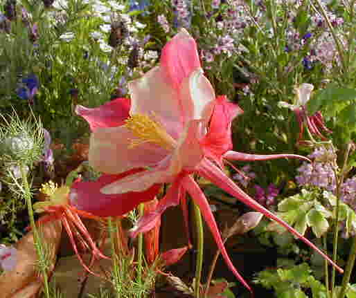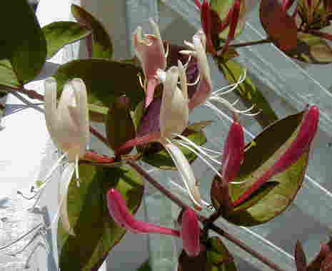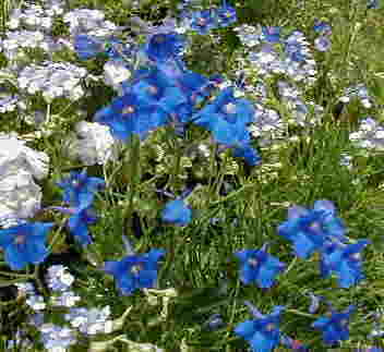 | 5/17(木) | <<今年のデルフィ達>> デルフィニウム・シネンシス なんとなく色幅があるような・・・ ラークスパー・ブルークラウド 小さい花がたくさん咲いてカスミソウのようです。 下のハニーサックル、咲き始めは確かにピンクでした。私の観察が足りなかった・・・そしていい香り〜 |