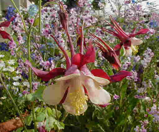 アグロステンマ・赤葉クローバー・ジギタリス・シノグロッサム 今日のお花も全部昨日と今日で咲いたお花です。 他にも咲いてたけど、また今度ね! 綺麗だった忘れな草が衰えてきて寂しいと感じていたところへシノグロッサムが咲いてくれてホッ。 昨日は北区のオープンガーデンの見学に行きました。よそのお庭には見たことのない花もあるし、やっぱり私のコンテナガーデンと本物のお庭とは大違い!いろいろ見てきたお花をまたの機会にupしたいと思います。 明日はハンギングをコンテスト会場に搬入するのですが、今あんまり綺麗なのがなくて、困りに困っているアニスなのです。「自分で1点を選べないのも実力が無いがらだ。」と夫に言われるのでした。 |
