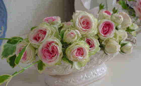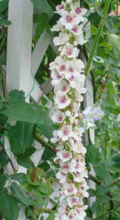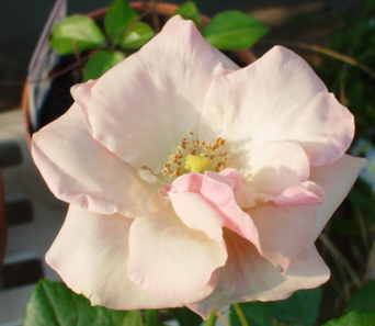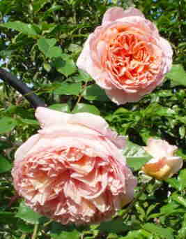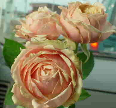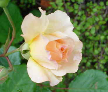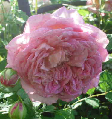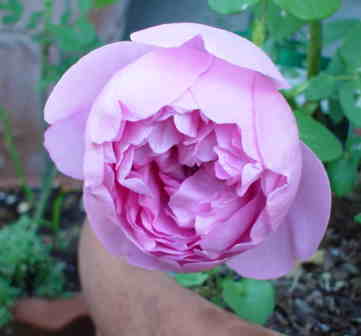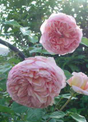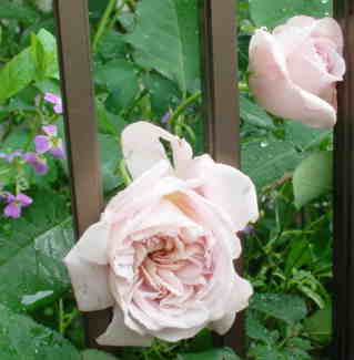 | 5/8(土) | カフェとレディヒリンドンが咲きました。(といっても2〜4日前)ヒリンドンは去年より育ったのか大きい花になっています。そう、小ぶりな花のオジェを見てからというもの他のバラが大きく見えて仕方がありません。 真ん中はバーバスカム・サザンチャーム。4月の終わりから咲いていますが、なかなか花持ちがいいし、何と言っても花色が綺麗。写真ではボケちゃってますがね。 昨日は今年1回目のオープンガーデンの日でした。友達にお手伝いに来てもらったのに、お客様は少なくてちょっと寂しいくらいでしたが、のんびり疲れる事もなく終える事ができました。学校帰りの小学生がお花を見せてもらったお礼にと後でダイアンサスの丸いブーケを持ってきてくれました。嬉しかったので家のお花をどれでも摘んでいいよとサービス。1人はデルフィニウムやジギタリスなどゴージャスな花を、もう1人は忘れな草やパツラなどの可憐な花がお好みのようで面白かったです。レモンタイムやパイナップルミント・カモミールなど触ったら香りがするよと教えてあげたらとても喜んでもらえました。 今日はクレマチスの丘に行ってきました。まだあまり咲いていないからか迫力に欠け不完全燃焼的な気持ちのまま帰るのも何だったので、以前から気になっていた杉山バラ園・エルローザに寄りました。こちらは入園無料なのにバラがたーくさん咲いていました。苗は買わなかったのですが、母の日用に切花を買って送りました。写真のバラは自分用に買おうと思ったらお店の人が下さいました。コロンとして小ぶりで花径は5〜6cm。色は最初外側がピンクで内側はアプリコット色、全体的にベージュがかっていて花びらの縁はグリーン、そしてだんだん全体がピンクになってきました。名前が分からないのが残念ですが、一応挿し木をしてみました。着くといいにゃ〜。ちなみに3月に切花を頂いた黒バラのロワイヤルは殆ど全部着きました♪ウフ〜、私って何時から挿し木名人になったのかしら?時期が良かったのかもね〜。 (このバラは”エデン・ロマンチカ”という名前みたい。2005年8月追記) |