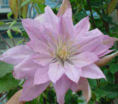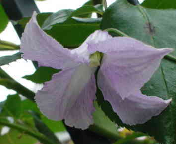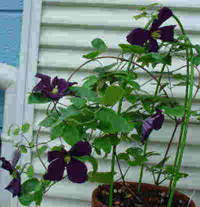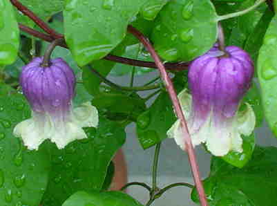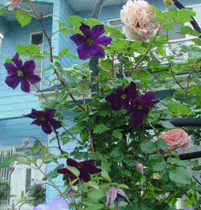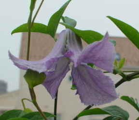 | 5/4(火) | 濃い紫のアキレギアは花びらが細くておしゃれな感じでカッコイイ〜〜。 紫燕飛舞(ツーヤンフェーウー・Zi Yan Fe Wu)は香りにノックアウトされそうなほど強い香り。私は強い香りがダメではないので惚れています。4月の終わりに咲いた1番花は壁に向いて咲いてしまったので切花にし、これは2番花です。 クレマチス・ベル・オブ・ウォッキングは私をクレマの世界に引き込んだ花。薄紫のバラのようでしょ? 今日で"アニスのコンテナガーデン"は4周年を迎えました。皆様こんなつたないHPに足をお運びくださりありがとうございます。見てくださる方々が居らっしゃるからこそ続けられたと感謝・感謝でございます。 それにしても、今日の風がまたこりゃひどい!!この間の二の舞にならないよう朝から風対策をしておりました。白いオベリスクは今満開なので夫に紐で3か所固定してもらいました。咲き出したプロスペリティはいきなり枝が折れて可愛そうなので玄関に入れました。こんな雑務ばかりでちっとも庭仕事は進まないのでありました。 |