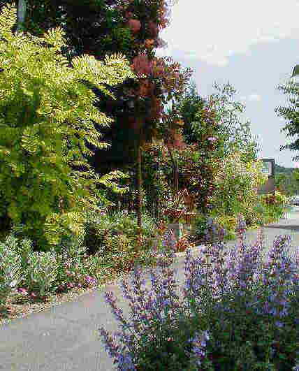 今日は近所の家を取材。左は同じ町内の方で、上下で一件のお宅です。左側は窓飾りがペチュニアかサフィニアで色もすっきりしていて素敵。ツル植物がまたいい雰囲気を出しています。アサリナかな?2階の窓なので良く分かりません。プロワリアのハンギングもいい色っ。 隣は本当に素敵なお庭で、この間までイングリッシュローズが咲いていました。植物も選ばれていて「ただ者ではない」って感じ。アニスは密かにあこがれています。写真はあじさい、ベリー(木苺?)、グラス、ヘリクリサム。下はボッグセージ。(家のはまだつぼみだい)七段花という変わったアジサイもありました。 23日に播いたペンステモン・ジギタリス・アニスが発芽。アニスは遅いけど一応播いてみました。種も甘い香りがしてどこか懐かしいの。 今日、ダチュラの小さい蕾のいくつかあるうちの1つが落ちていたの。環境が気に入らないのかな?ちょっとショック。植え替えてくれの合図? |