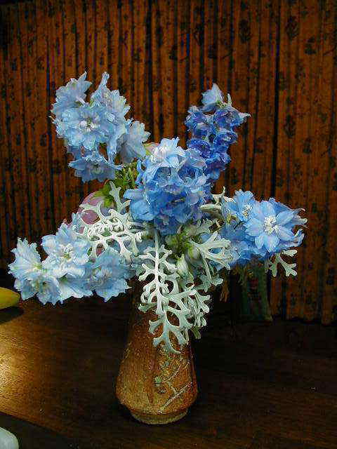 家のデルフィはまだまだ健在よ!皆さんのお宅でもまだ咲いているでしょうか?この写真では青に見えるけど実物はとても魅力的な深い青紫なの。 |