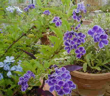 | 7/18(水) | 去年からの斑入り葉のフロックスと今日頂いた白花フロックスとサクララン(ホヤ)。 ホヤっの花はロウ細工のような砂糖菓子のような不思議な硬さの質感。真下を向いて咲いていますが、ひっくり返して写真を撮りました。半日陰で育てなければいけないのですが、家って夏は日陰が無いの。とりあえずフェニックスの木に吊るしたけれど大丈夫かな? 今日は”すま・花・ネット”の会議で夕方から屋上に出ました。カヤツリグサのような存在感がある雑草が生えてきていたのでそれを使って和の寄せ植えを作りました。こういう時が一番楽しいと感じます。たいしたものはできないけれど・・・ タキイからパンジーの種がちょびちょび送られてきています。 |