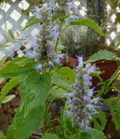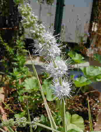 | 7/24(火) | こ〜んなに暑いのに元気なオリガヌム(だっけ?)。透き通るようなグリーンが素敵です。6月に買って挿し芽いっぱいしたけどもうそろそろ着いてるかな。 右はアニスヒソップ、学名はAgastache foeniculum。白もいいけどブルーがお気に入り。 昨日はちょっとだけ挿し芽して、今日は水遣りと花がら摘みだけ。 お出かけしすぎで大事なコバエアを枯らしてしまった。夕方の水遣り何回もサボっちゃったんだよねー。コバちゃん、もう少しで咲くところだったのに・・・。 あまりの暑さに涼を求めて図書館に行き、捜していた能勢さんの本を借りてきました。7/30〜4夜連続で「英語でガーデニング」という番組をNHKでやるそうです。イギリス行きのために見なきゃ、見なきゃ。 |