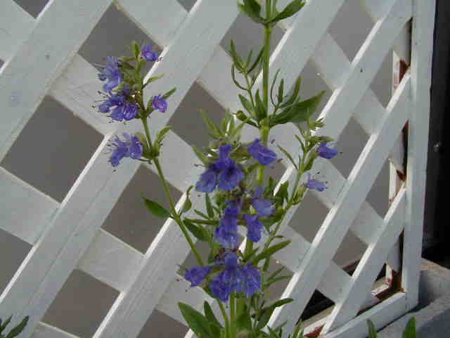| 8/23(水) | 今、挿し芽苗のローレンティアがハンギングの中で満開です。右は屋上で細々と咲くヒソップ。 今日は関西ではおなじみの「地蔵盆」でした。子供がお線香を持って近所を歩き回り袋いっぱいお菓子をもらってくるという夏休み最後の子供のお楽しみです。毎年私が一番がんばるのですが、ホント疲れましたぁ〜。 |
