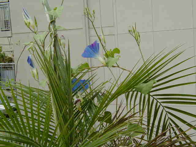 | 8/29(火) | 居間やキッチンから見られるようベランダで育てたヘブンリーブルー。絡みつかれたフェニックスが新しい葉を開けずに可愛そう!ハンギング用に買ったプルンパーゴは手持ちのとは色が違うみたい。色が濃くて、種類が違うのかな? パンジーは25日くらいから発芽が始まり、今日キャンプから帰ってきたら半分くらいの種類が発芽してました。暑い中、日よけも十分ではなく”ほったらかし園芸”なのに・・・ キャンプに行く前にディアスシアを思いきって刈り込みました。イギリスのTV番組で見た物のように大きく茂っていたのですが、秋から冬にかけてに咲いて欲しかったの。日本の夏には合わない花だと思っていたけど、来年はディアスでいっぱいにできたらいいなぁ。 |