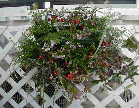 | 9/12(水) | 唐辛子とクフェアのハンギングを作りました。写真ではわかりませんが、トウガラシの紫がかった葉とクフェアの薄ピンクがよく似合っていると思うのですが・・・ちょっと暗すぎですね。 米国のテロ事件はショッキングでした。こんな恐ろしい思いをしたのは震災の時以来です。のんきにガーデニングなんかしてていいのか?と午前中はTVにはり付いていたけれど、午後からハンギングを2つ作りました。 ビオラのpot上げも3ケースしました。 |