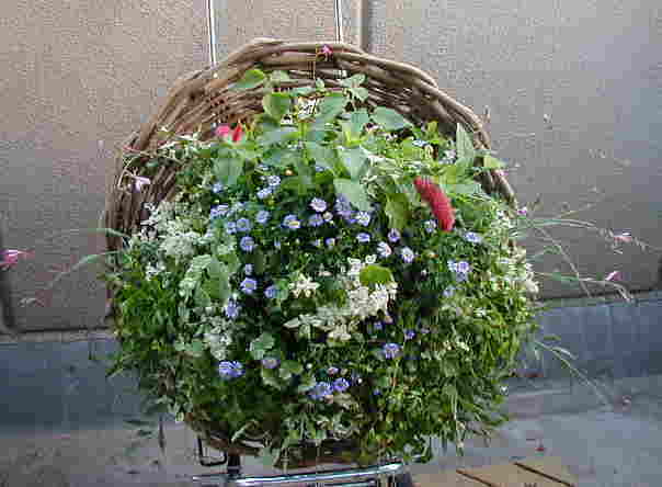 | 9/28(金) | 今日作ったブラキカム、アカリファ、ガウラなどのハンギング。今日作ったとは思えないでしょ? ずーっと独学で好きなように(滅茶苦茶に)作りつづけてきたアニスですが、今日初めて講習会にて勉強してきました。独自の方法でたくさんの苗を植え込んで作ってすぐから綺麗なハンギングを作られている青木先生のところまで行ってきました。今までの作り方とは全く違うので戸惑うことばかり。、しかも手先の不器用な私にマスターできるかどうか不安が多いですが、是非近いうちに自力でおさらいしたいです。 |