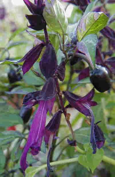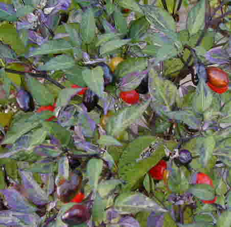 夏は干からびながら咲いていたサルビア・バイオラセアがやっとまともになってきてこれからが楽しみです。バイオセラの赤紫は光によってぜんぜん違う表情を見せてくれます。この写真ではビロード感のある黒っぽい色に写っています。 一緒に育っているトウガラシは赤・緑・黒とにぎやか。 夏に種まきしたリナリア・パープレアも咲き始めました。 今家族全員風邪をひいちゃってます。 |