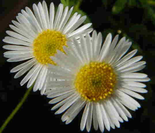 左は屋上ではびこっているエリゲロンをマクロ撮影してみました。今年は特に元気いっぱいに咲いています。ピンクの花は種がこぼれて咲いているバージニアストック。春の花がいろいろ咲いちゃって季節が変になっています。右のシュッコンアスターもこう見るとほとんど雑草ですねー。ピンクや紫のダブルの派手なのが欲しいな〜。 このところ前日の天気予報では「曇り」なのに朝には結局「快晴」ばかり。まだまだ暑くて仕事になりません。 |