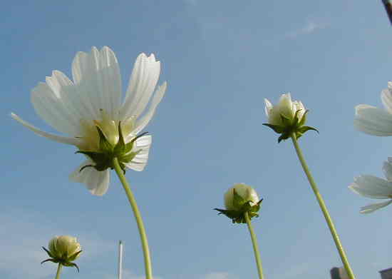 秋になったのですね〜、コスモス・ブリリアントスターが咲き出しました。薄ピンクの丁子咲きの中身がオレンジがかっていてとっても可愛いです。左のピンクはたまたま低い位置で咲いていたのですが、私の背より大きくなっているので下からしか撮れないの。 コスモスやドリコス、イポメアなどにアブラムシがついて困ります。きっと根が張りすぎて弱くなっているんだと想像するのですが。。。今年はお盆過ぎから水遣りを1日1回と控えるようにしたのでまだウドンコにはなっていません(単にまだ暑いだけ?)。 |