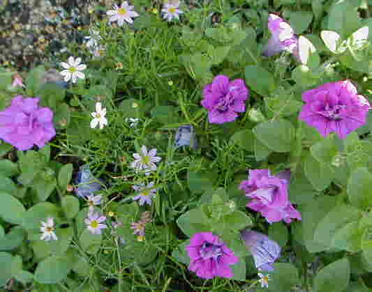 デルフィニウムが1本残らず腐ってしまった大鉢にパカラリウム・メディティリウム(シノグロッサムみたいなやつ)がこぼれ咲いています。意外と暑いのが平気ってこと?バージニアストック、フロックスなんかも咲いていて、紫はななやアンドロサセの芽があちこちから出ています。 雨が降った後どんな芽が出てくるか毎年この時期楽しみなんですよ〜。 昨日は種まきを少しだけしました。ハンギングのお直しをして、枯れてしまったものの整理。お盆に1度枯れたアキレギアが復活していたのが感動!さすが宿根というだけあって根は生きてたのね〜。 10株あったプリムラ・ビアリーは全滅。オーリキュラが4株残っています。 |