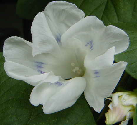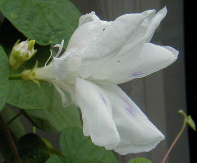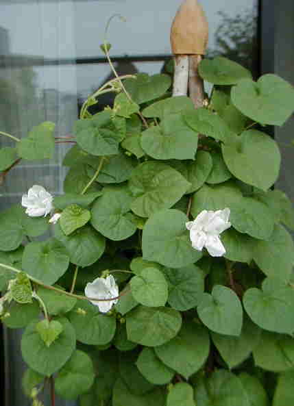 キャーキャー!Z様印のイポメア・ジプシーブライドが咲きました!うーん、なんてエレガント!水切れから守るためと長い時間眺めたかったのでベランダで大事に育ててきました。1度台風で半分枯れたり、蕾がついたのに開かず終わったりでハラハラさせられました。バッタがこの葉を好きで好きで・・・。 それにしても小さい米粒のようなつぼみがほんの2〜3日で大きい蕾になるんです。不思議を感じずにはいられませんわ。 昨日は運動会で家の子はリレーで全員抜き(バトンを受け取った時はビリで渡す時は1番!)で短距離は苦手なアニスは感動!それとジプシーブライドの開花で感激いっぱいの1日でした。 |