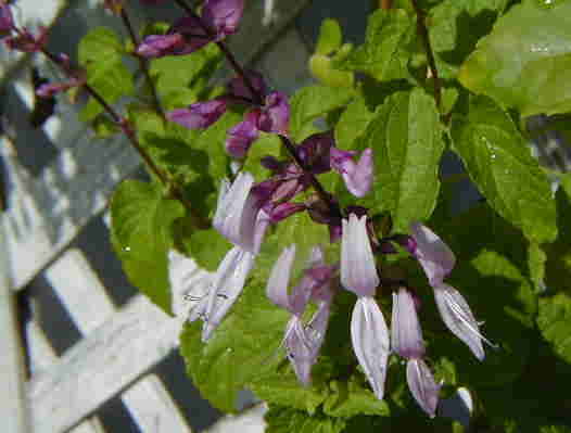 ドリコスラブラブ(Dolichos lablab)が咲きました。 熱帯アフリカ原産の多年草だそうですが、日本では一年草扱いだそうです。 去年風雅舎さんで旺盛に咲いていた姿が印象的でお店の人に名前を聞いたのですが、種は去年育てた方が採取してお友達へ、その方から私へと巡り巡ってきたものです。(ありがたや〜) 今年は私の回りの方々にもお分けできるといいのですが。 5月に播いて発芽しなかったベゴニア・ピンクスプラッシュが1つだけ発芽していました!なんで今頃?ですが、ずーっとネームプレートを付けたまま置いておいた私もすごいよね。(ナマグサってこと?) |