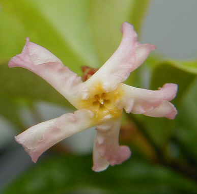 テイカカズラのピンクが咲きました。挿し穂を頂いて1年3ヶ月、やっと花を見ることができました。フリルのある花びらが巻いていますが、今から開くのかな?ピーチピンクで可愛いなっ、こうやって良く見てみるとかざぐるまみたい。これを何かに絡ませて大きく育ててみたいものです。 そうそう、悲しい出来事がひとつ。厳しい暑さの屋上で3〜4年もがんばってくれていたボッグセージ君がネキリムシにやられてお亡くなりになりました。何となく変だなと思った時に植え替えてあげていれば・・・ その代わりと言ってはなんですが、さし芽苗を頂いた中からチェリーセージの赤が咲き始めました。家では赤は要らないと思いつつ、よその家でこれといって何も無い庭に元気に咲きまくる姿を見ては「ちょっと欲しいかも」と密かに思っていたりして。 |