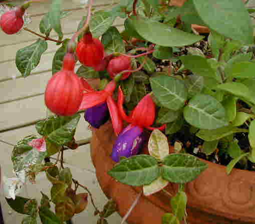 | 10/8(月) | 10月に入って元気回復したフクシアちゃん。この子は初夏にも最後まで咲いていた元気者。ハンギングから鉢にお引越ししました。 連休中は南信州にキャンプに行ってました。ちょっと寒かったけど、温泉三昧するにはちょうどいい気候でした。赤いりんごが木になっている風景が大好きなアニスです。 渋滞のため夜遅くに帰ってから屋上の点検に行くと・・・予想を越えたナメクジの数にビックリ!明日からまた夜のパトロールです。 |