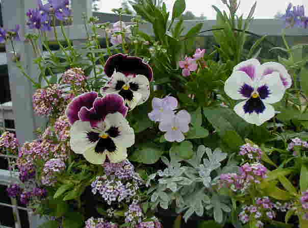 | 10/18(木) | ビオラが咲いてきました。 左から順に・・・パンジーアフタヌーンティー(mix)からピンク(タキイ)。 自家採取種の水色のビオラ。 ビオラ・ブルーパーフェクション(タキイ)から変種? 2年前に買った種からビオラ・ヘレマウント。 明日から「すま花ネット」の写真展なので、今日は搬入&飾り付けでした。ハンギングを5つとスタンドなどを車に積み込むだけで体力のない私はヘトヘト。それに比べてお姉さま方の元気なこと!遅く行くし途中で帰るし、たいしてお役に立てずすみませんでした〜って感じ。 早起きして忘れな草のポット上げを45株しました。昨日はシノグロッサムとイオノプシディウムを合わせて1ケースポット上げ。コッパーフィールドでハンギングも1つ作りました。今年はすごいピッチでハンギングを作っています。どーしちゃったんだろうってくらい。。。 |