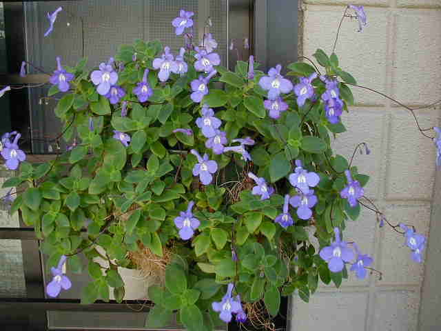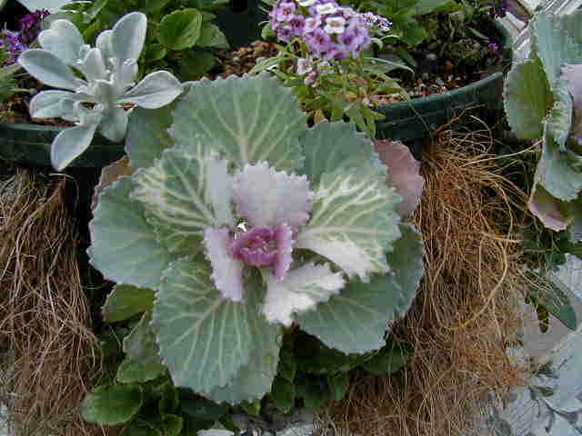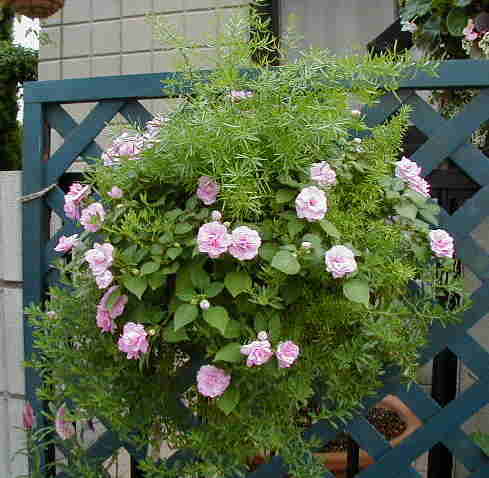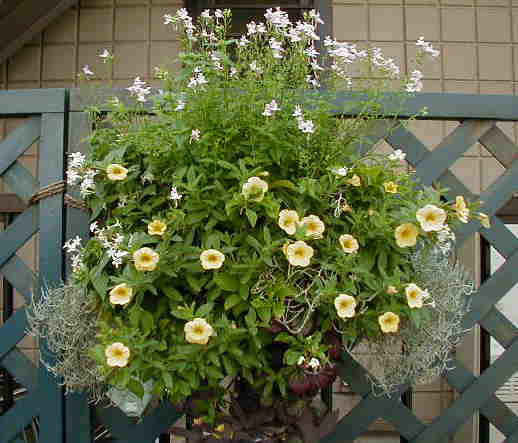 ビンゴブルーフロストで作ったハンギング。最近気づきましたが、私が去年苗で買って気に入って欲しかったのはローズフロストの方だった!エ〜ン! |
