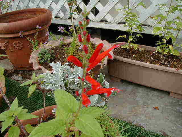 | 11/8(水) | 去年は大株になったのに、今年は小さいパイナップルセージ。 昨晩なめくじ退治をしていたら、通りかかりの人に「オープンガーデン、見に行きましたよ」と声をかけられました。 |