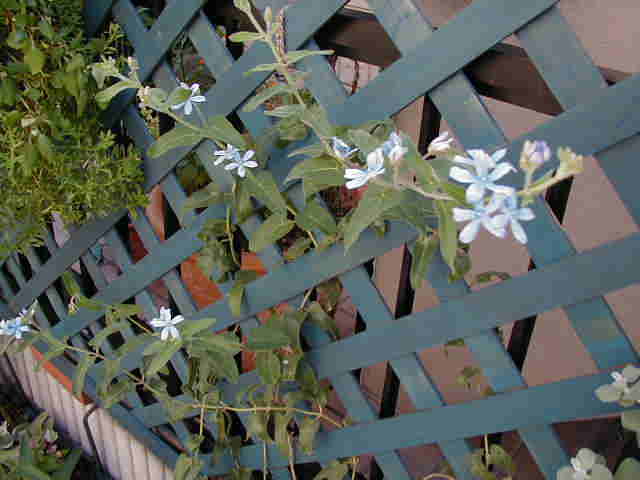 強い風に耐える為トレリスに絡みついたオキシペタラム。普通ならcutするところをツル植物のように伸ばして使ってみました。お気に入りです。 昨日、デルフィニウム(ベラドンナ咲き)をpot上げしました。イチゴのハンギングも作ったよ。ちゃんと収穫できるかな? |
