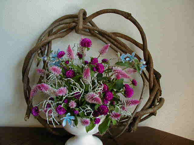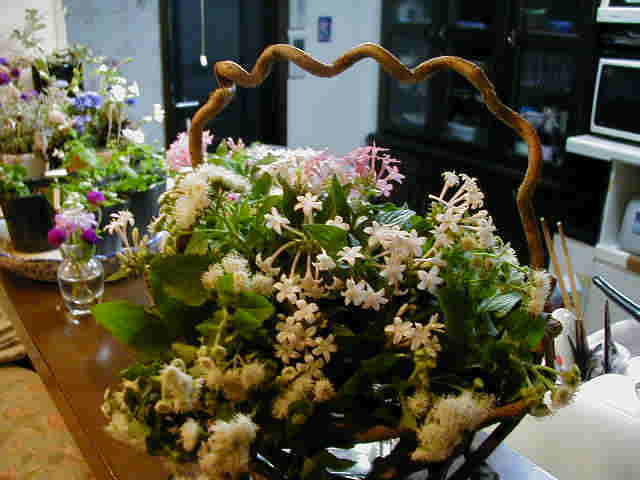 | 11/30(木) | ツルで編んだバスケットに処分したアゲラタムとペンタス。 昨日の朝、屋上のホースの中の水が凍っていました。TVでは最低気温5.3度でしたのに・・・。屋上はやっぱり並の寒さではないのだわ。 昨日ガレージでお友達とハンギングを作っていたら車を止めて見に来た人がいました。ひとりで屋上で作るのが落ち着いて花も選べるしいいけど、たまには話ながらっていうのもよかったな。 |