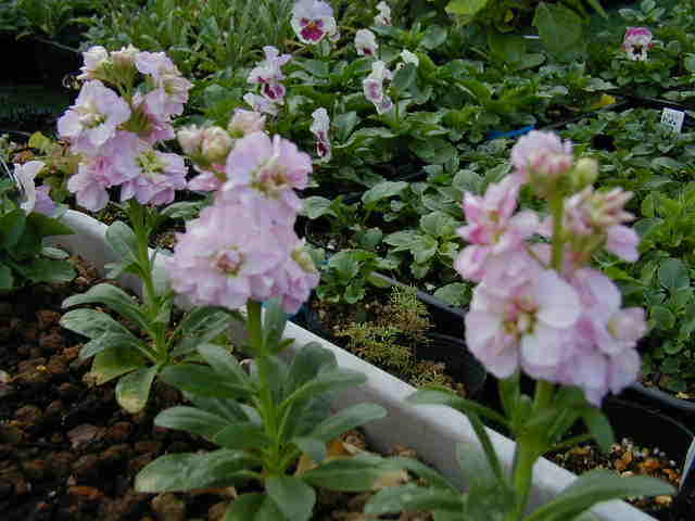 初めて種から作ったストック(ピグミーチェリー)こんなに可愛いならもっとたくさん作れば良かったなぁ。たくさん発芽ましたが少なめにPot上げしたのです。 |