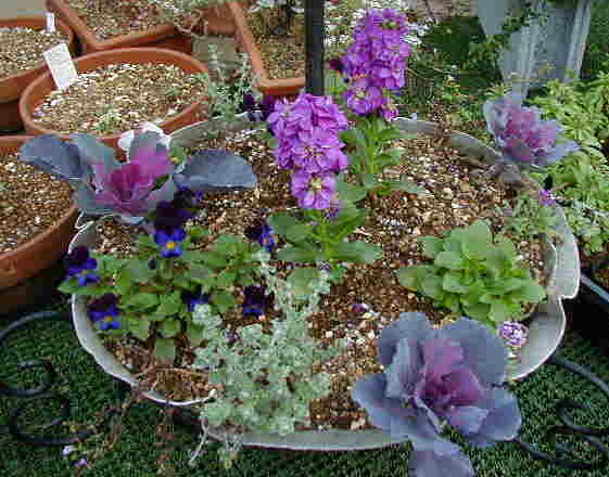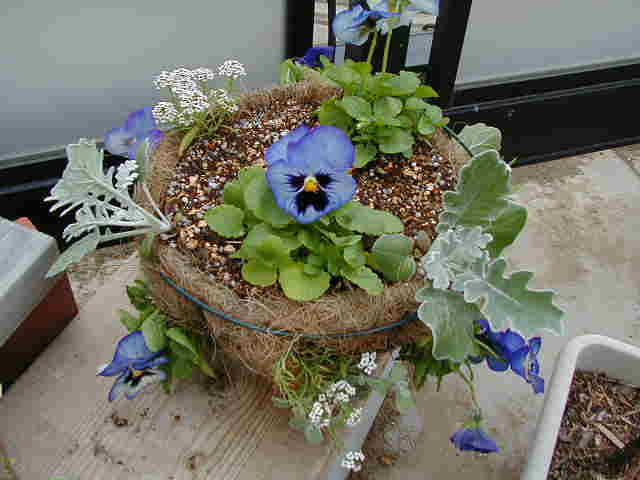 | 11/24(金) | 冬の代表選手たち。ビオラは1株に10くらい花が咲いているのに、パンジーはゼロ。植え替えた土になじめないのでしょうか? =====お知らせ===== 今日からアニスは「ハンギングバスケットマスター」になりました!落ちたら恥ずかしいので受験したことをあまり言わないようにしていました(エヘッ)。腕前はまだまだですが、ハンギング作りがんばります。 |