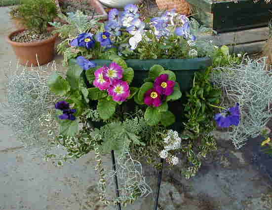 | 11/26(日) | 今日作ったプリムラジュリアンとパンジー・ビオラ・アリッサムプラティーナシルバーレースのハンギングです。 やっとハンギングの解体をはじめました。まだ咲いているデュランタはポリホットに入れてフレームに。アゲラタムやペンタスは切花にして少しだけ試しに挿し芽。ローレンティアも挿し芽。咲きまくっている宿根ネメシアは寄せ植えにリメイク。ミリオンベルも植え替えてフレームに。フレームは23日にビニールを張りました。まだ空けっぱなしです。 |