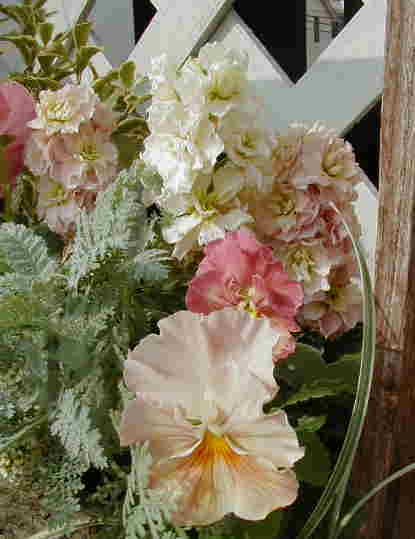 | 11/1(木) | なんだか訳のわからない挿し芽のハンギングですが、赤紫がかった暗い葉にツデーの明るい緑色が綺麗かなーと思ってパチリッ。花はイポメア・はならんまんとサマーウェーブ、1番下にはアルテナンテラ・ポリゴノイデス、左右にブライダルベールがチラチラ咲いているのが可愛いポイントなのに写真ではわかりませんね。 今、最後のポット上げ作業に追われて大忙し。今日はロベリア、昨日はヘリオフィラ・アナガリス・ナデシコブラックベア・クレビス・ルピナスなどなど。いつものことながら、またまたポリポットやケースが底をつきそうになってきたので急いでパンジーを定植してしまわないと・・・ 今週チューリップを植えるつもりでしたが、今日も暑いくらいなので中止。「寒いなー」って思ったときにすることにします。 昨日は今年の神戸市のコンテストで最優秀賞に輝いたお庭を見てきました。(たぶん以前に雑誌で見たところだと思うのですが)てっきり南側だと思っていたら、なんと!家と同じ北向きのウォールガーデンだったのです!なんだか親近感わいちゃって、手を取り合って苦労話でもしたくなりました。やっぱり賞をとるためには同じ花をたくさん並べて統一しなくちゃいけないってわかりました。私には無理だなー、つまんないもん。 好きなものを好きなように作って、ただ並べるだけが好きなんだもーん。 |