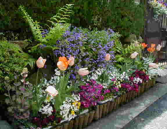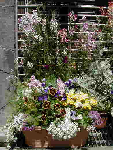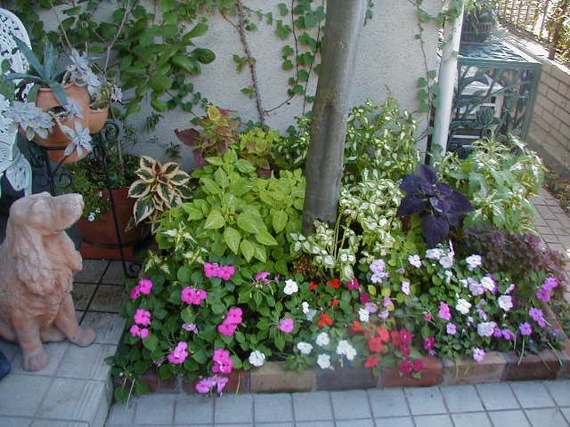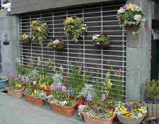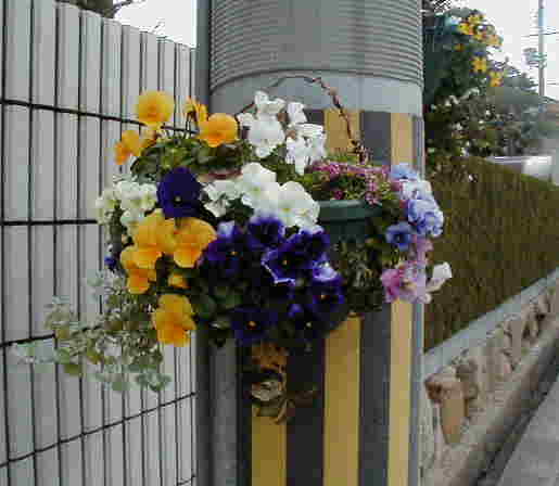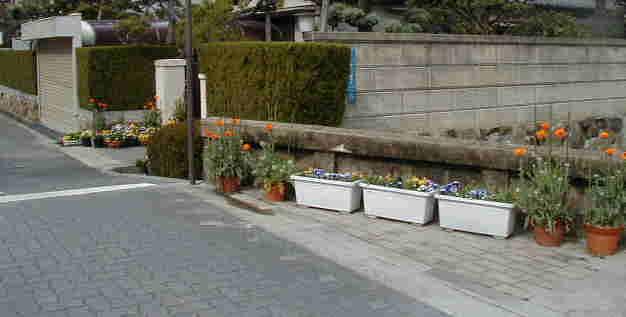 | 2002.02.19 尼崎の「17th St.」の見学。 前日の夕刊を見てホーリー&アニスが探しに行ってきました。 雪のちらつく真冬だというのにこちらの通りには花の色がいっぱい! ご近所さん13世帯で花を飾っていらっしゃるのですが、なんと草花は種からなさっているそうで・・・アニス感激!! お花が道の両側にあふれ咲く小道。そんな夢のような街。できるものなら私達もそういうのをしたいと話しながら帰ったのでした。 |