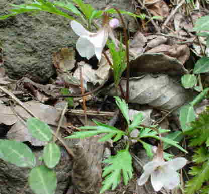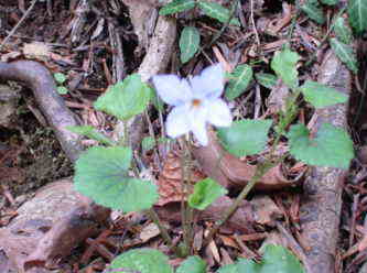 葉っぱが大きいから白花ナガバノスミレサイシン?いやわからない。