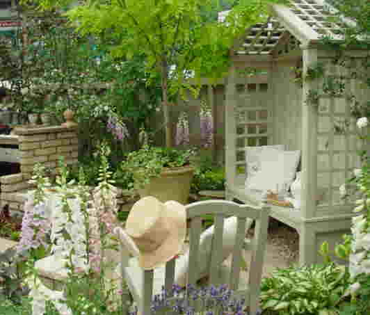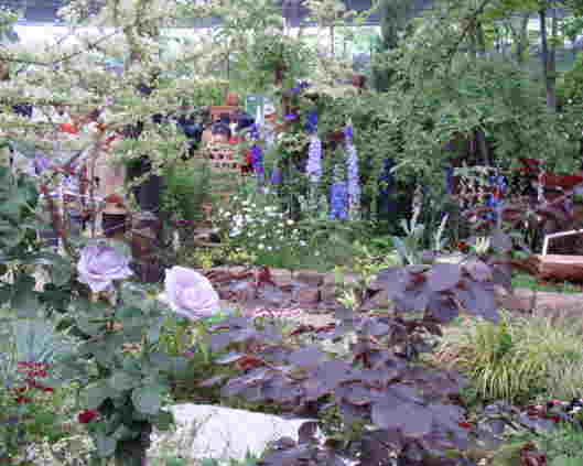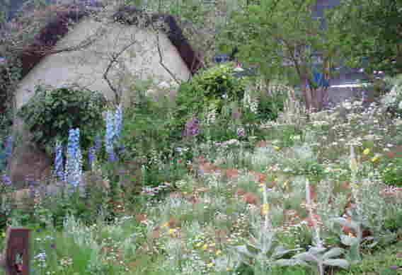 手前がロックガーデン、一段高い奥にボーダーがあります。
