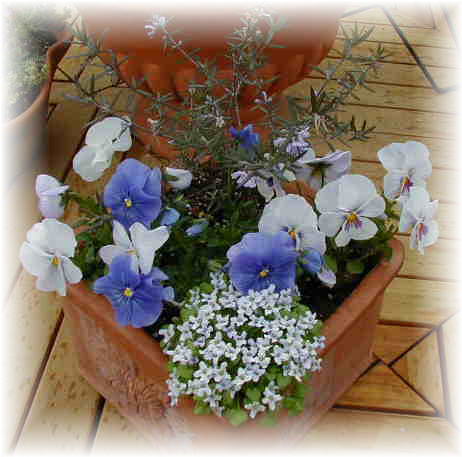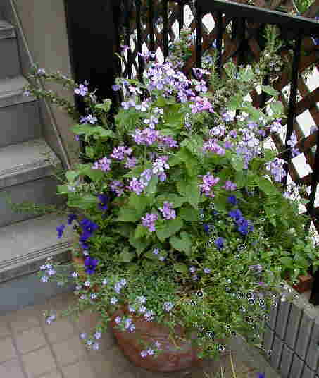 後ろから、ローズマリー、紫はなな、ルナリア、パンジー