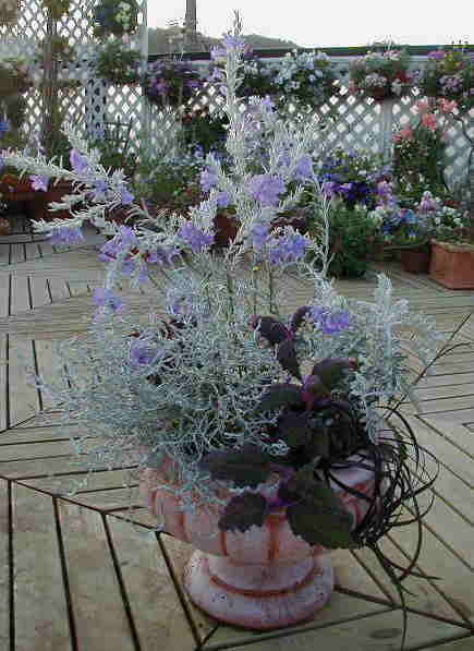 エレモフィラ・ニベアとプラティーナ・ギヌラ・コクリュウの寄せ植え