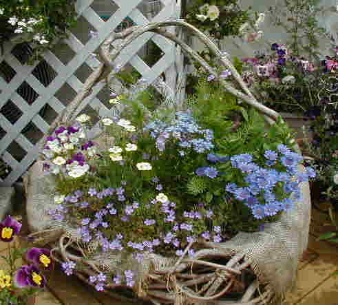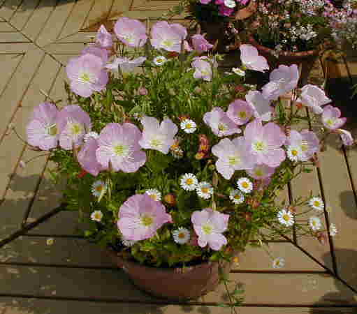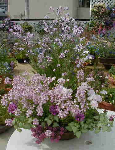 中:シノグロッサム、マーガレット、宿根ネメシア、ラミウム、アリッサムのピンクの寄せ植え