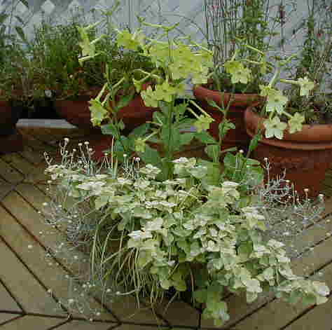 葉物は以前マーガレットの寄せ植えに使っていたもの