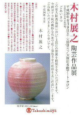 | 木村展之 陶芸作品展 ◆平成16年6月9日(水)〜15日(火) ◆大阪島屋 6階アート・サロン |
