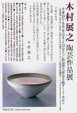 | 木村展之 陶芸作品展 ◆平成19年6月6日(水)〜12日(火) ◆大阪島屋 6階アート・サロン |