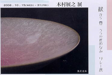 | 木村展之 展 ◆平成20年 10月15日(水)〜31日(金) ◆うつわ屋 めなみ リレー展 京都市北区小山花ノ木町15 075-493-4353 |